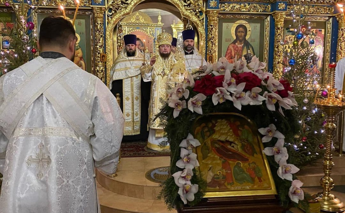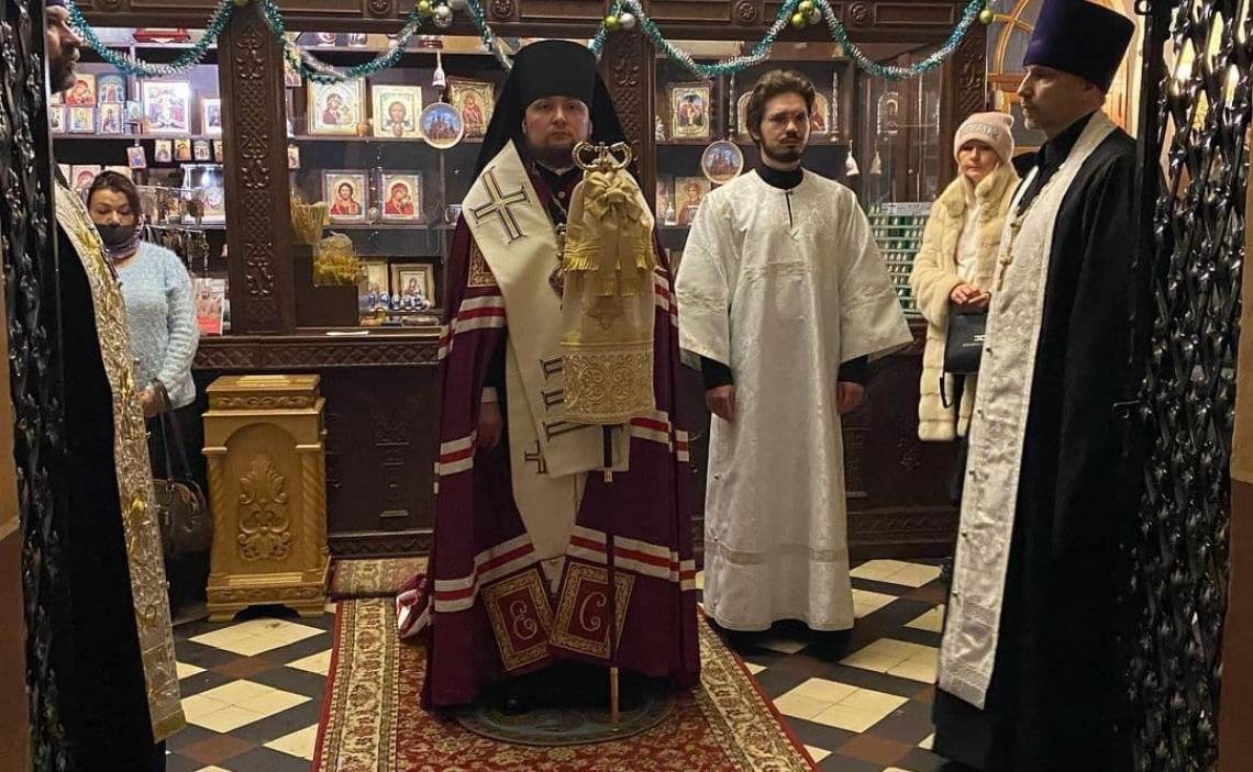 6 января, в Рождественский сочельник вечером, Епископ Истринский Серафим совершил Великое Повечерие с литиёй и утреню в Свято-Успенском соборе Крутицкого подворья
