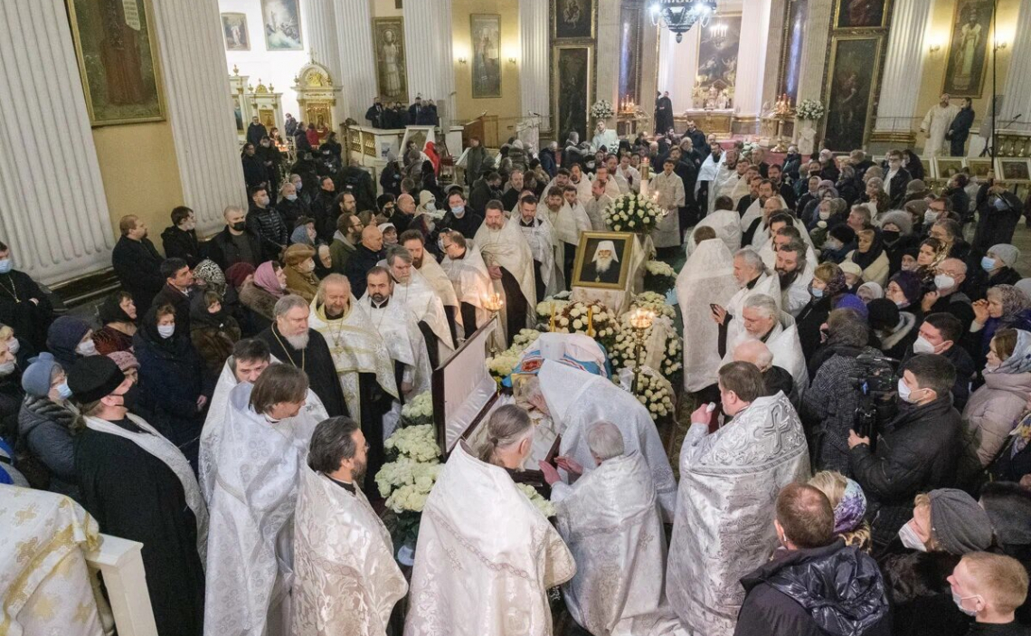Затем правящий архиерей возглавил отпевание митрополита Владимира (Котлярова), преставившегося 19 января, в сослужении митрополита Петрозаводского и Карельского Константина, епископа Выборгского и Приозерского Игнатия, наместника обители епископа Кронштадтского Назария, епископов Тихвинского и Лодейнопольского Мстислава, Гатчинского и Лужского Митрофана, Петергофского Силуана и духовенства митрополии. В Богослужении принял участие председатель Синодального отдела по делам молодежи епископ Истринский Серафим.