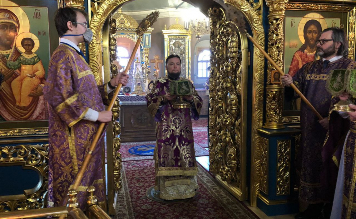 По сугубой ектении Владыка вознес молитву «во время губительного поветрия и смертоносныя заразы», а также молитву о Святой Церкви.