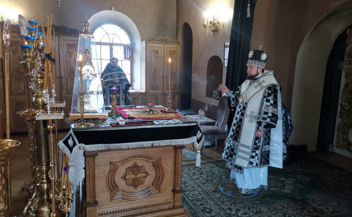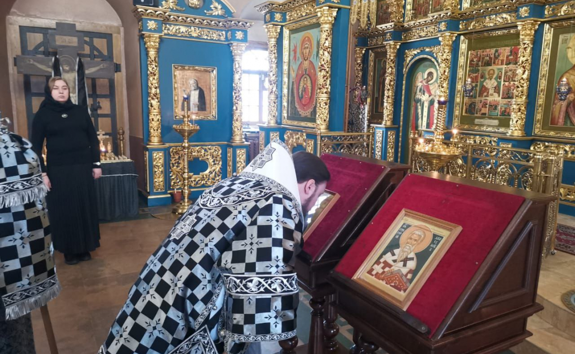 За Литургией по сугубой ектении Владыка вознес молитву «во время губительного поветрия и смертоносныя заразы», а также молитву о Святой Церкви.