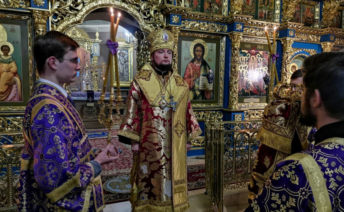 Его Преосвященству сослужило местное духовенство, песнопения исполнял мужской хор храма.
