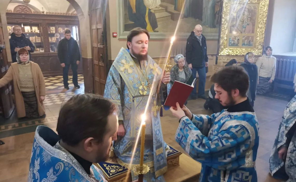 Вечером 8 апреля, в канун праздника Похвалы Пресвятой Богородицы, Епископ Истринский Серафим совершил утреню с чтением акафиста Пресвятой Богородице в Свято-Успенском соборе Крутицкого подворья.