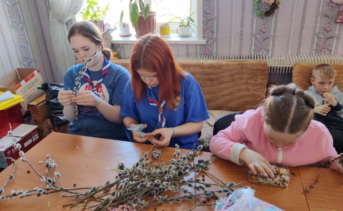 Следопыты «Адреналина» посещают множество тематических мероприятий, проводимых в Доме культуры, и не упускают возможности собираться вместе за каким-нибудь интересным делом: 14 апреля ребята организовали небольшое занятие по украшению верб к приближающемуся Вербному воскресенью.