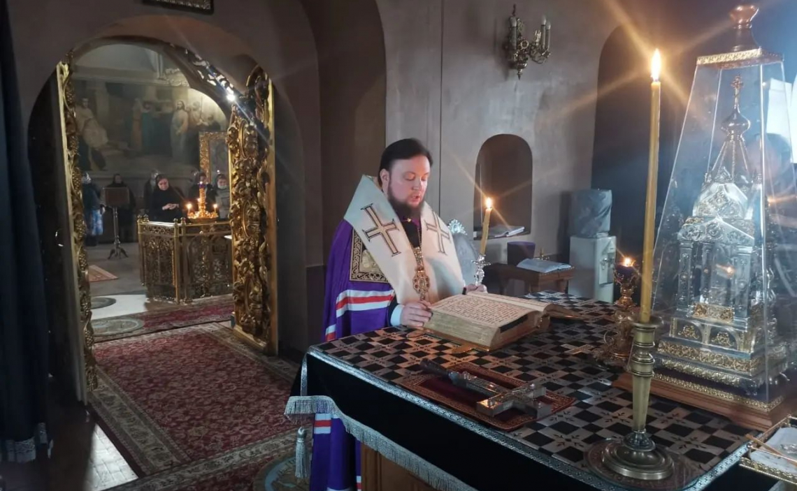 18 апреля, в канун вторника Страстной седмицы, Епископ Истринский Серафим совершил вечерню и утреню Великого вторника в в Свято-Успенском соборе Крутицкого подворья.