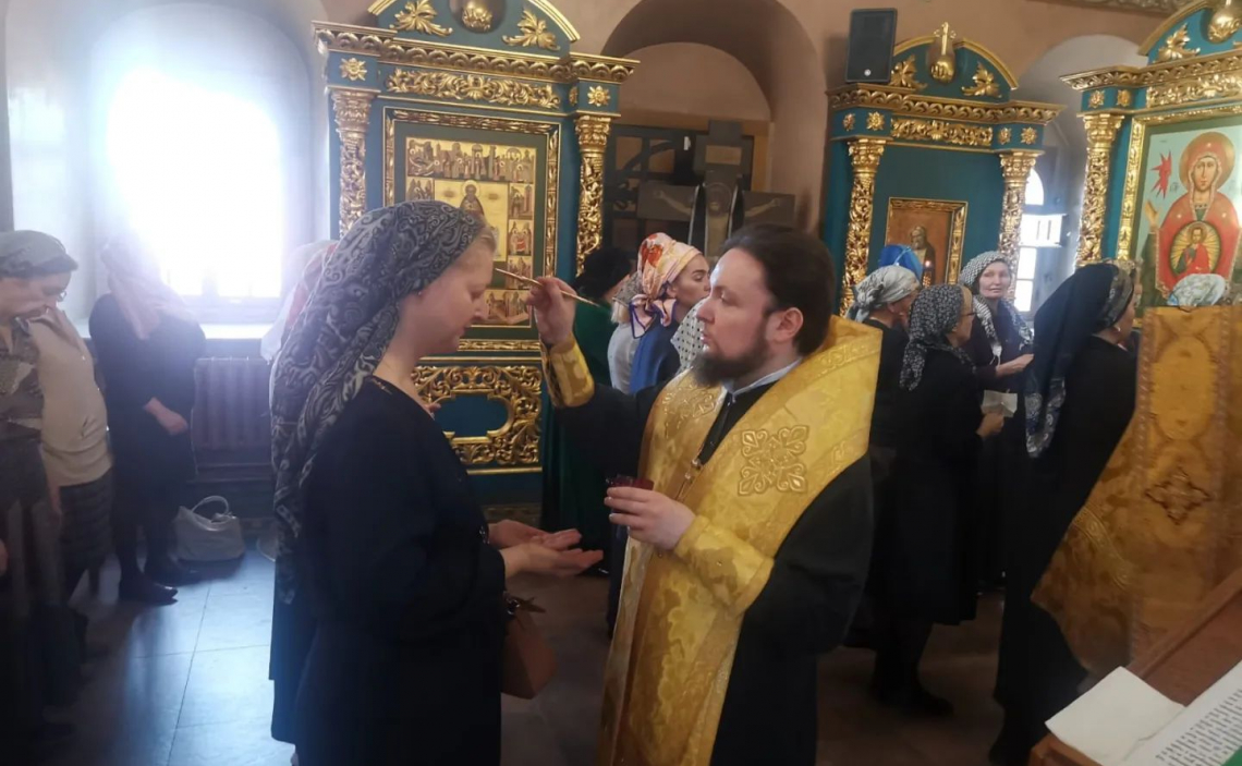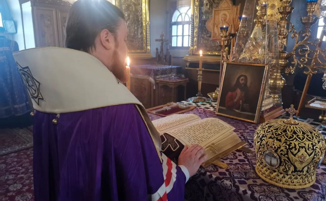 20 апреля, в канун Великого Четверга, Епископ Истринский Серафим совершил вечернее Богослужение в Свято-Успенском соборе Крутицкого подворья