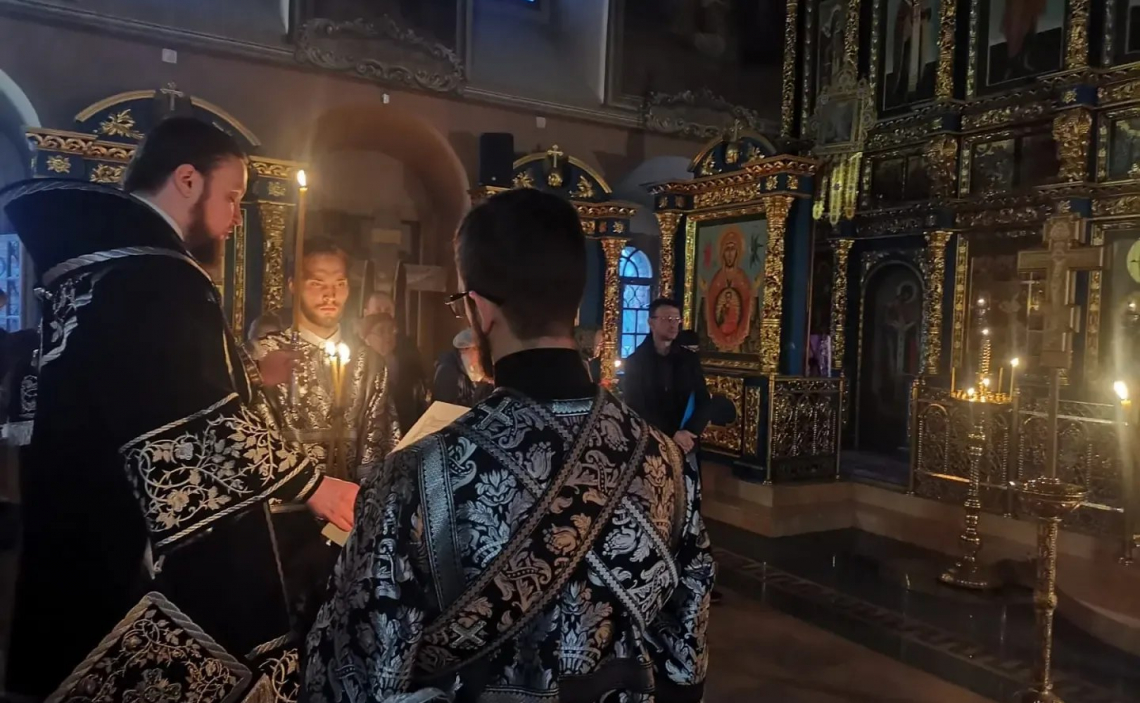 В канун пятницы Страстной седмицы Епископ Истринский Серафим совершил утреню Великого Пятка в Свято-Успенском соборе Крутицкого подворья