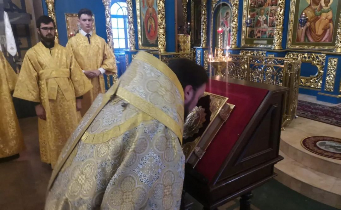 После проповеди при пении молитвы «Под Твою милость…» Его Преосвященство совершил поклонение Божией Матери перед Ее чудотоворным Феодоровским образом.