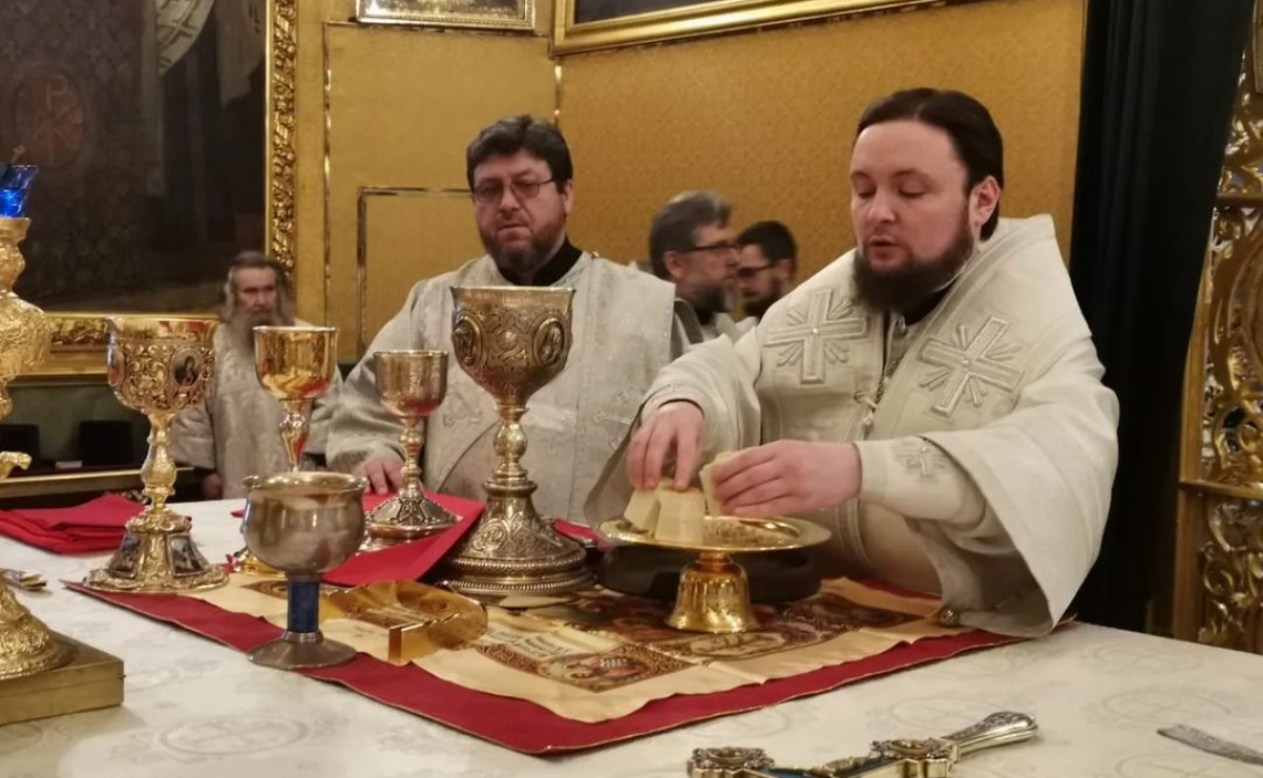 По заамвонной молитве Владыка Серафим совершил освящение хлеба и вина.