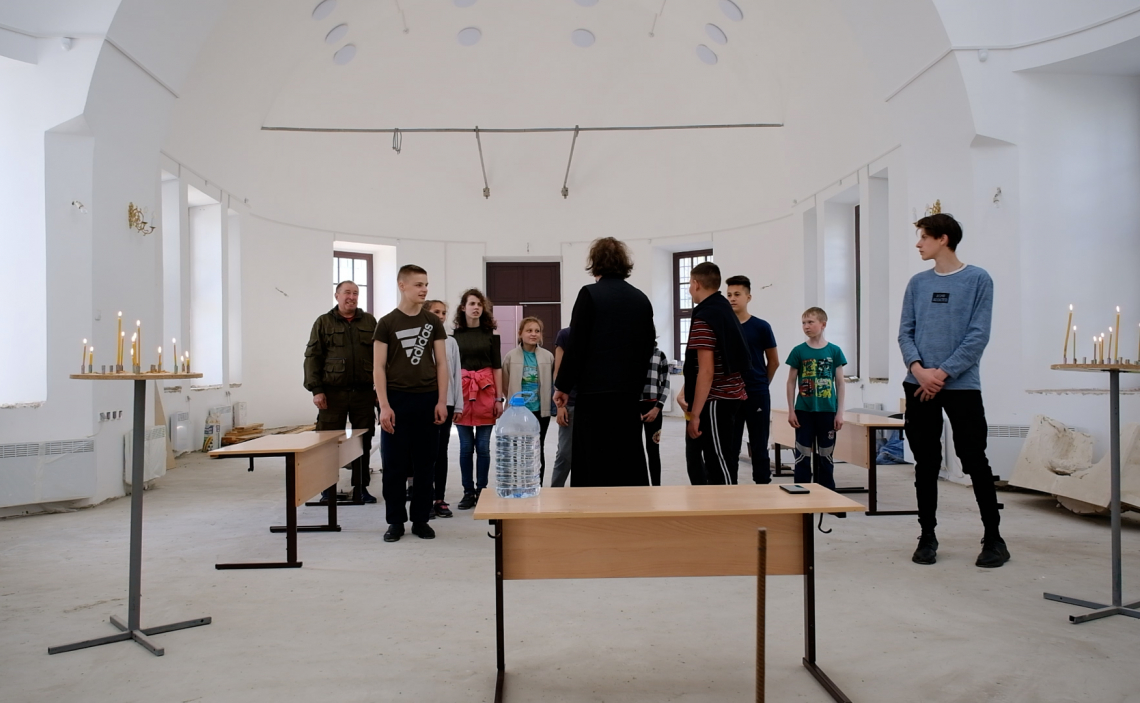 В завершение трудового дня все участники в храме воспели тропарь Воскресения Христова.