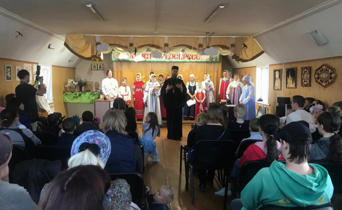 В праздничный день для семей организовали поздравление: перед зрителями выступили детский церковный хор, коллектив «Крестоходцев», театральный кружок показал спектакль «Пасхальная радость». А в завершение каждой семье были вручены продуктовые наборы, а также пасхальные куличи и шоколад по количеству детей в семье. Всего было собрано и вручено 30 наборов.