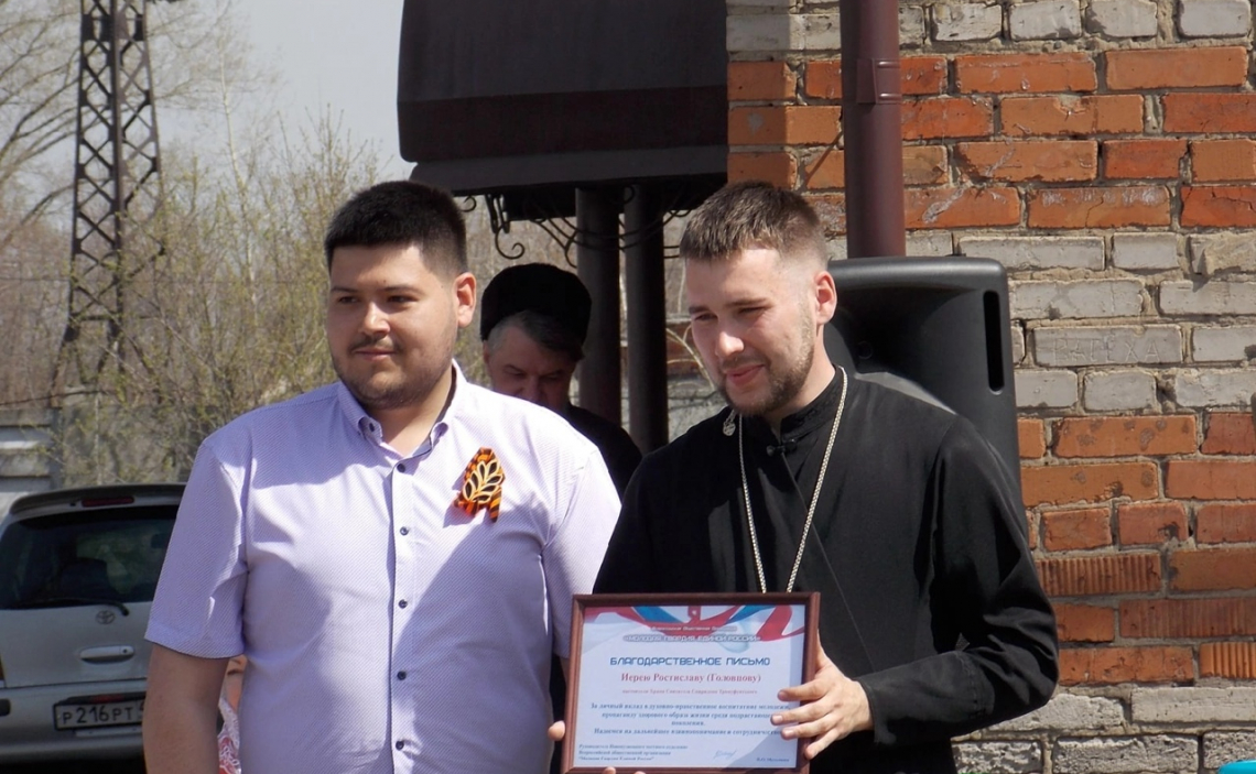 Гостем мероприятия стал Владислав Олегович Метёлкин – руководитель Новокузнецкого местного отделения Всероссийской общественной организации «Молодая Гвардия Единой России». Владислав Олегович приехал с поздравлениями и с подарками для эко-бригады прихода, которая занимается прихрамовой территорией и старается сделать поселок чище.