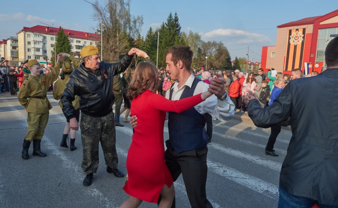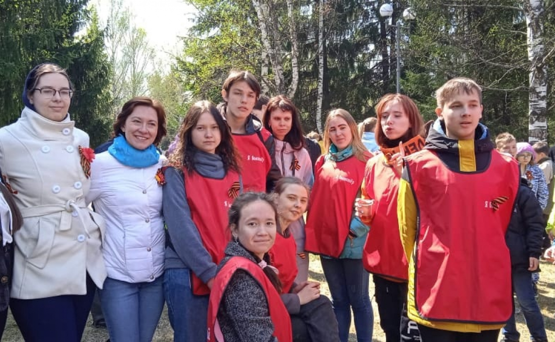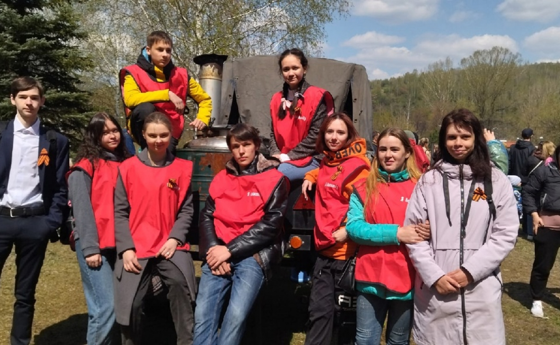 Волонтеры православного молодёжного клуба «Восхождение» г. Междуреченска помогали в организации различный праздничных акций и торжеств. Ребята раздавали георгиевские ленточки в городском парке, ассистировали на полевой кухне – угощали «фронтовой» гречкой с тушёнкой ветеранов Великой Отечественной войны и жителей города. Участники клуба в течение всего дня посещали тематические мероприятия и погружались в эпоху 40-х годов. У музея Воинской славы звучала музыка духового оркестра, гремели выстрелы пушки ЗИС-3, а вечером на центральной площади Междуреченска профессиональные танцоры в одежде военных лет исполнили «Майский вальс» с жителями города.