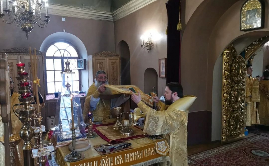 19 июня, в неделю первую по Пятидесятнице, Всех святых, Епископ Истринский Серафим совершил Божественную Литургию в Свято-Успенском соборе Крутицкого подворья