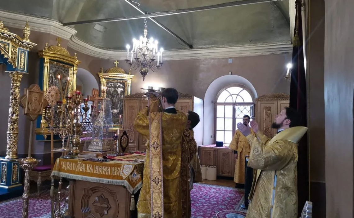 По сугубой ектении Владыка вознес молитву «во время губительного поветрия и смертоносныя заразы», а также молитву о Святой Церкви.