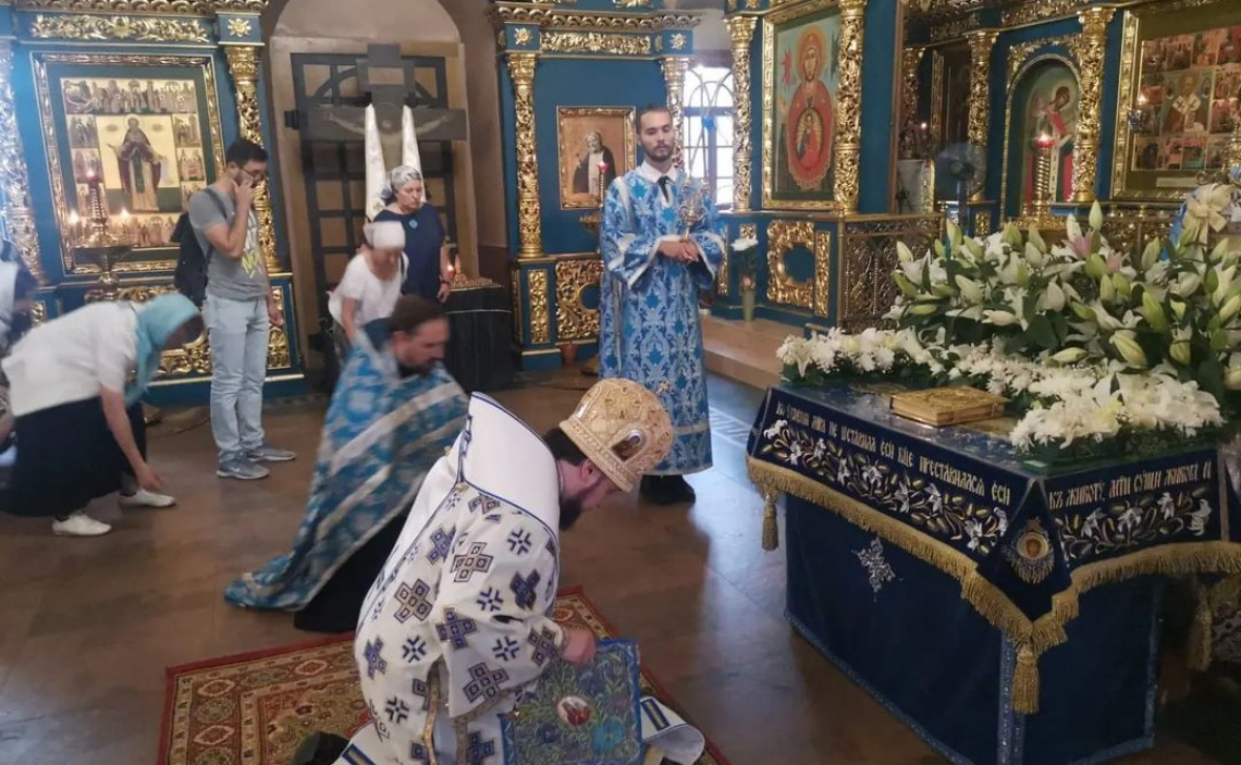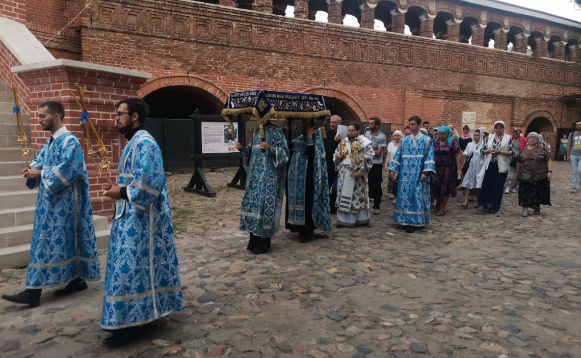 После великого славословия состоялся Крестный ход с Плащаницей. Шествие, которое возглавил Епископ Серафим, проследовало вокруг Свято-Успенского собора, в воспоминание о погребальном шествии святых апостолов и учеников, и последователей Христовых во время Успения Пресвятой Богородицы.