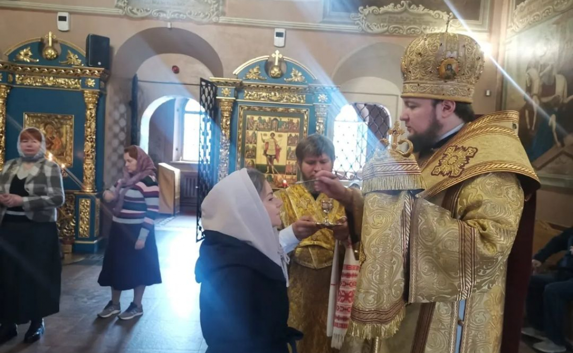 К принятию Святых Христовых Таин приступила большая часть молившихся в храме прихожан.