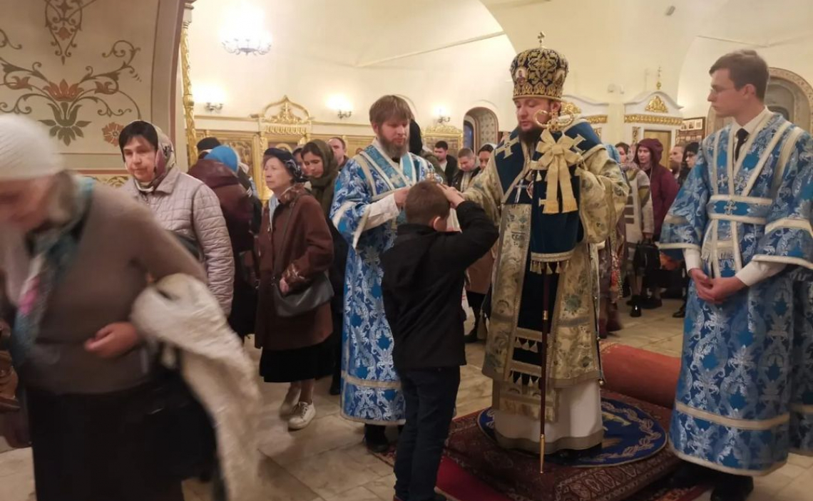 На вечерне Преосвященнейший владыка Серафим совершил литию с освящением хлебов, пшеницы, вина и елея, а на утрени возглавил Полиелей. По прочтении Святого Евангелия Его Преосвященство помазал верующих освященным елеем.