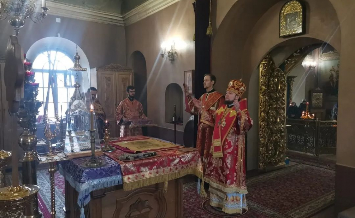 После Таинства Причастия Епископ Серафим и сослужащее ему духовенство совершили поклонение Кресту Господню и славление святым мученицам.