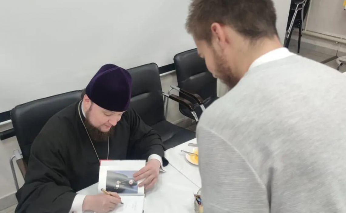 В завершение встречи Его Преосвященство вручил каждому гостю авторские издания книги «Служение Слова», в которую вошли проповеди и речи владыки. Поблагодарив епископа Серафима, молодые люди попросили оставить в подаренных книгах запись на молитвенную память.