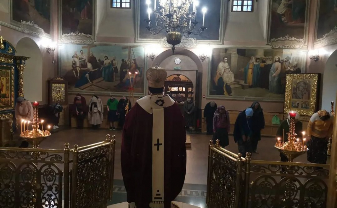 На утрени Епископ Серафим возглавил полиелей и великое славословие, за Литургией по сугубой ектении Владыка вознес молитву о восставновлении мира.