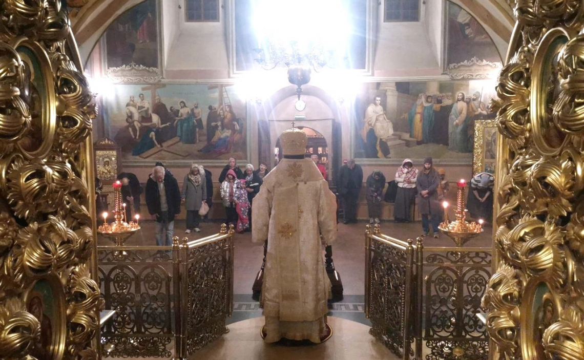 На вечерне Владыка совершил благословение входа, а на утрени – возглавил полиелей и великое славословие. Во время чтения канона Архипастырь помазал верующих освящённым елеем.