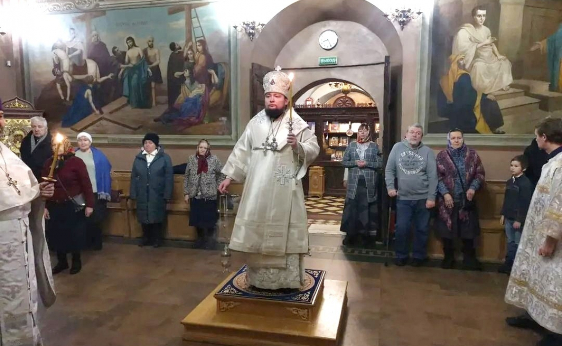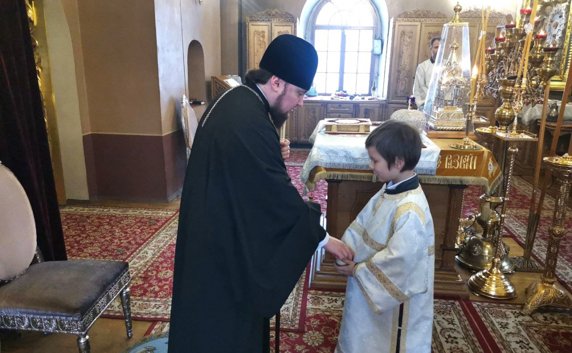 Его Преосвященству сослужило духовенство храма, песнопения исполнил мужской хор под управлением регента Евгения Ахмадиева.