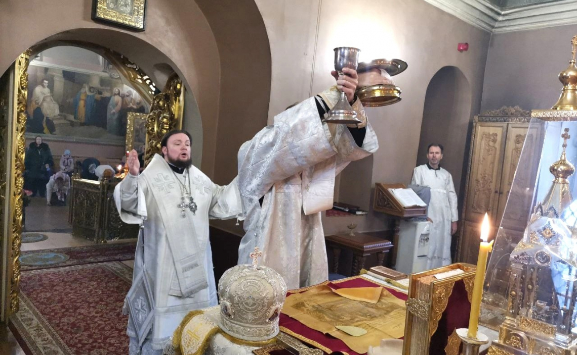 В праздник Собора Архистратига Михаила и прочих Небесных Сил Бесплотных епископ Истринский Серафим совершил Божественную Литургию в Свято-Успенском соборе Крутицкого подворья