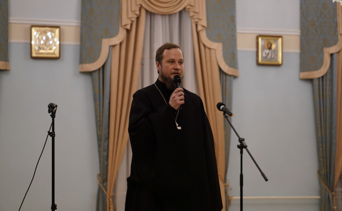 Ведущим благотворительного концерта стал иерей Виктор Сыромятников, руководитель молодежного епархиального общества добровольцев Рука помощи. Отец Виктор отметил, что во все времена Церковь поддерживала своих воинов, наступило такое время и сейчас. Каждый из пришедших на концерт мог перевести посильное пожертвование на нужды омичей, мобилизованных в зону боевых действий.