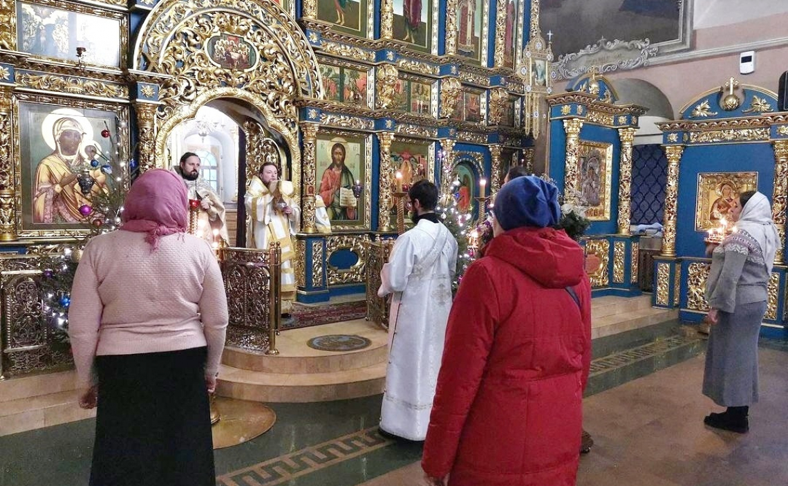 В отдание праздника Рождества Христова, День памяти преподобного Паисия Святогорца епископ Истринский Серафим совершил Утреню и Божественную Литургию в Свято-Успенском соборе Крутицкого подворья
