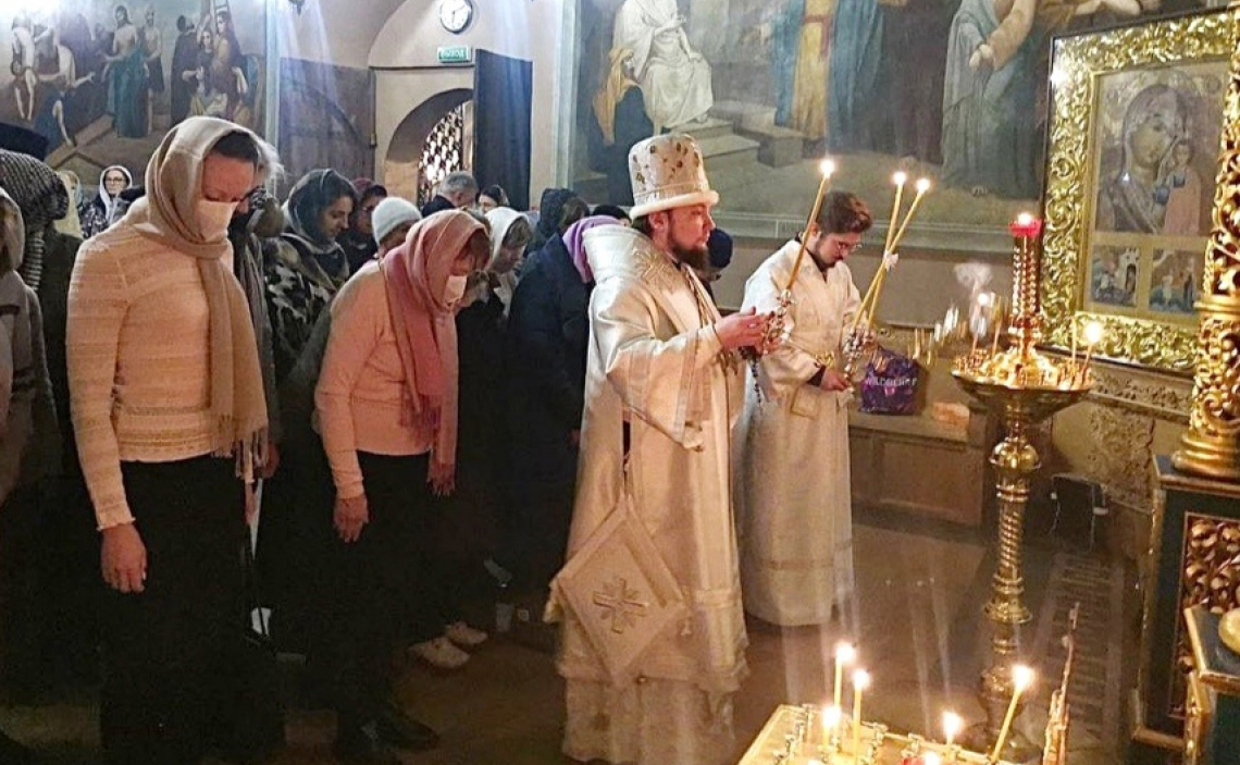 В канун Великого Двунадесятого праздника Крещения Господня епископ Истринский Серафим совершил Великое Повечерие с литией и Утреню в Свято-Успенском соборе Крутицкого подворья