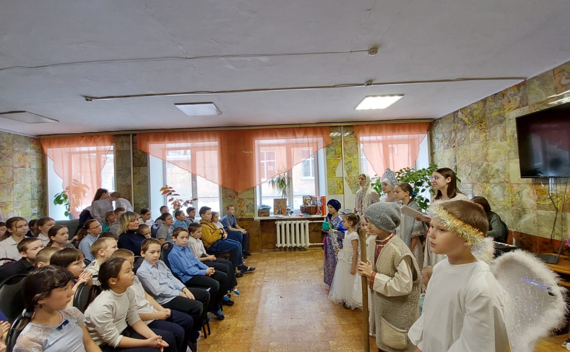 Концерт провели ученики воскресной школы храма Святителя Николая г. Новокузнецка. Ребята подготовили веселые сценки, исполнили традиционные песнопения и колядки. В мероприятии приняли участие около 70 человек.