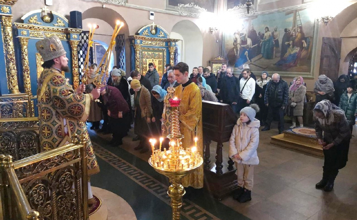 В Неделю о блудном сыне, праздник Собора вселенских учителей и святителей Василия Великого, Григория Богослова и Иоанна Златоустого епископ Истринский Серафим совершил Божественную Литургию