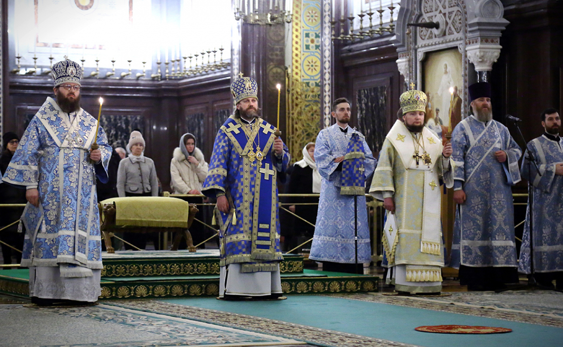 В канун праздника Сретения Господня епископ Истринский Серафим принял участие во Всенощном бдении в Кафедральном соборном Храме Христа Спасителя