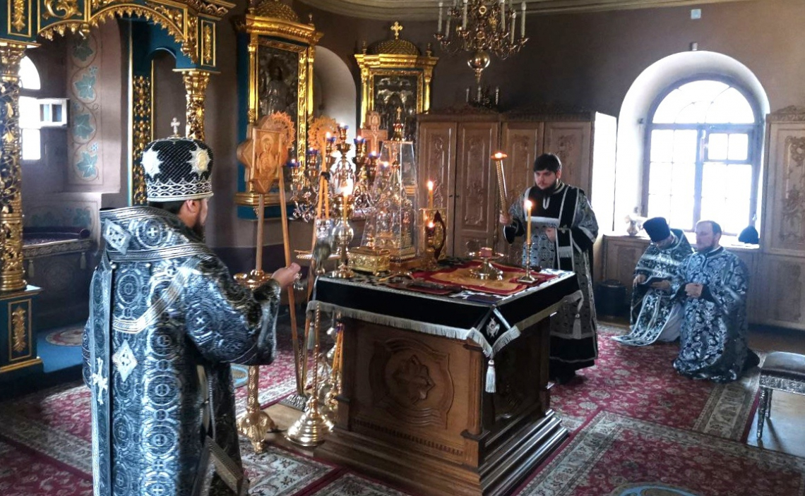 В среду 4-й седмицы Великого поста, Крестопоклонной, епископ Истринский Серафим совершил Богослужения в Свято-Успенском соборе Крутицкого подворья