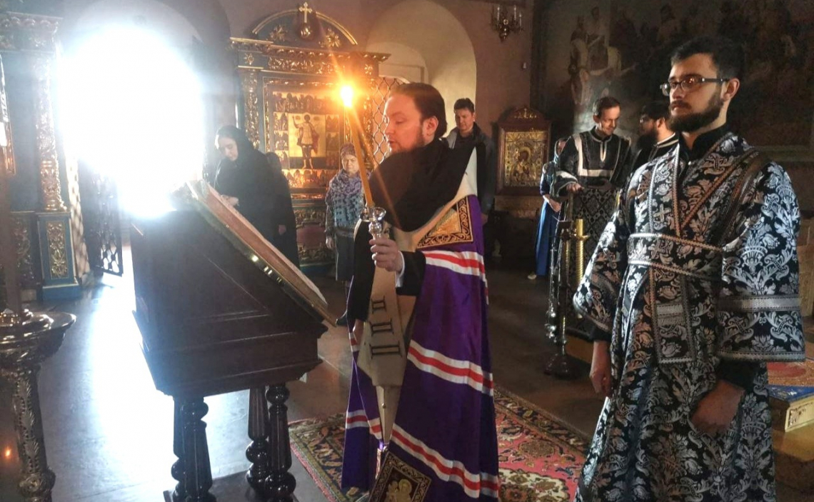 В Пятницу Страстной седмицы епископ Истринский Серафим совершил Царские часы в Свято-Успенском соборе Крутицкого подворья