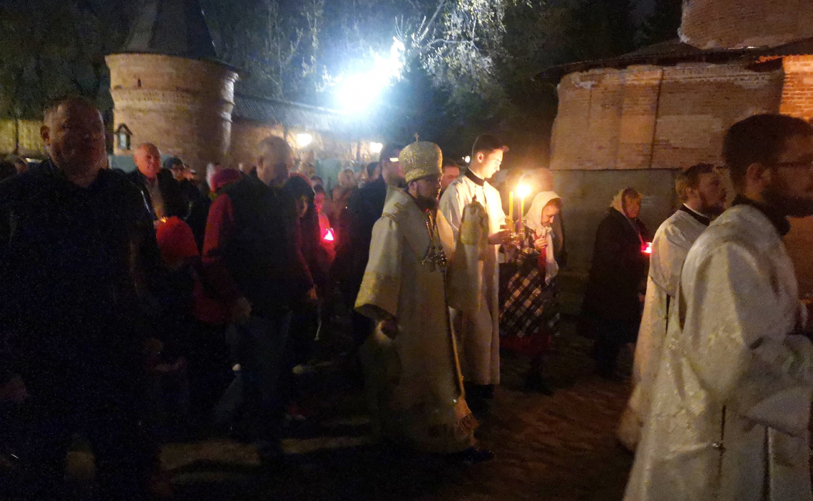 По окончании полунощницы, под пение стихиры «Воскресение Твое, Христе Спасе», священнослужители вместе с народом, подобно мироносицам, пришедшим ко гробу, совершили традиционный крестный ход вокруг Свято-Успенского собора. Пение тропаря «Христос Воскресе из мертвых» возвестило молящимся о великом событии – Воскресении из мертвых Христа Спасителя.