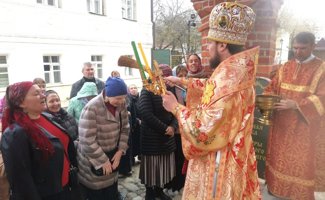 Его Преосвященству сослужило духовенство храма. Праздничные песнопения исполнил мужской хор под управлением Евгения Ахмадиева. За Богослужениями молились многочисленные прихожане, собравшиеся разделить великую радость о Воскресшем Спасителе.