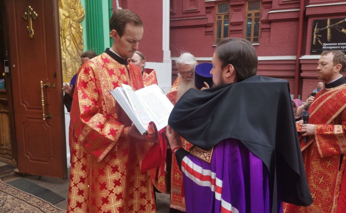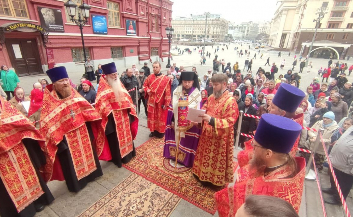 В праздник в честь Иверской иконы Пресвятой Богородицы епископ Истринский Серафим возглавил молебен в часовне Иверской иконы Божией Матери у Воскресенских ворот на Красной площади