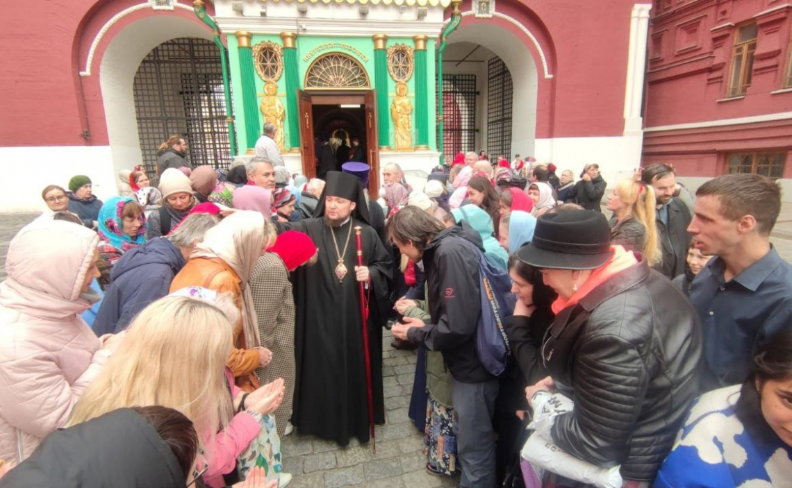По благословению Святейшего Патриарха Московского и всея Руси Кирилла в праздник Иверской иконы Божией Матери председатель Синодального отдела по делам молодежи епископ Истринский Серафим совершил традиционный молебен с акафистом в Иверской часовне у Воскресенских ворот на Красной площади, где хранится список чудотворного образа.