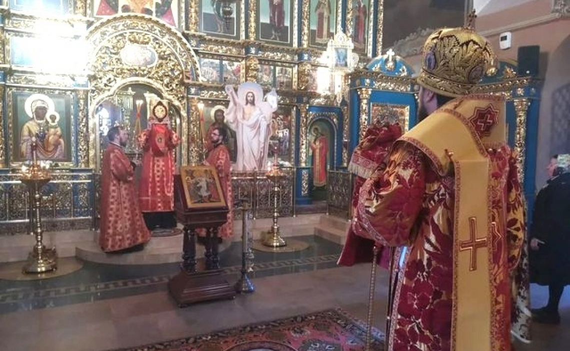 Владыка и священнослужители Свято-Успенского собора прочитали кондаки и икосы акафиста, после каждого из которых хор исполнил тропарь Воскресению Христову.