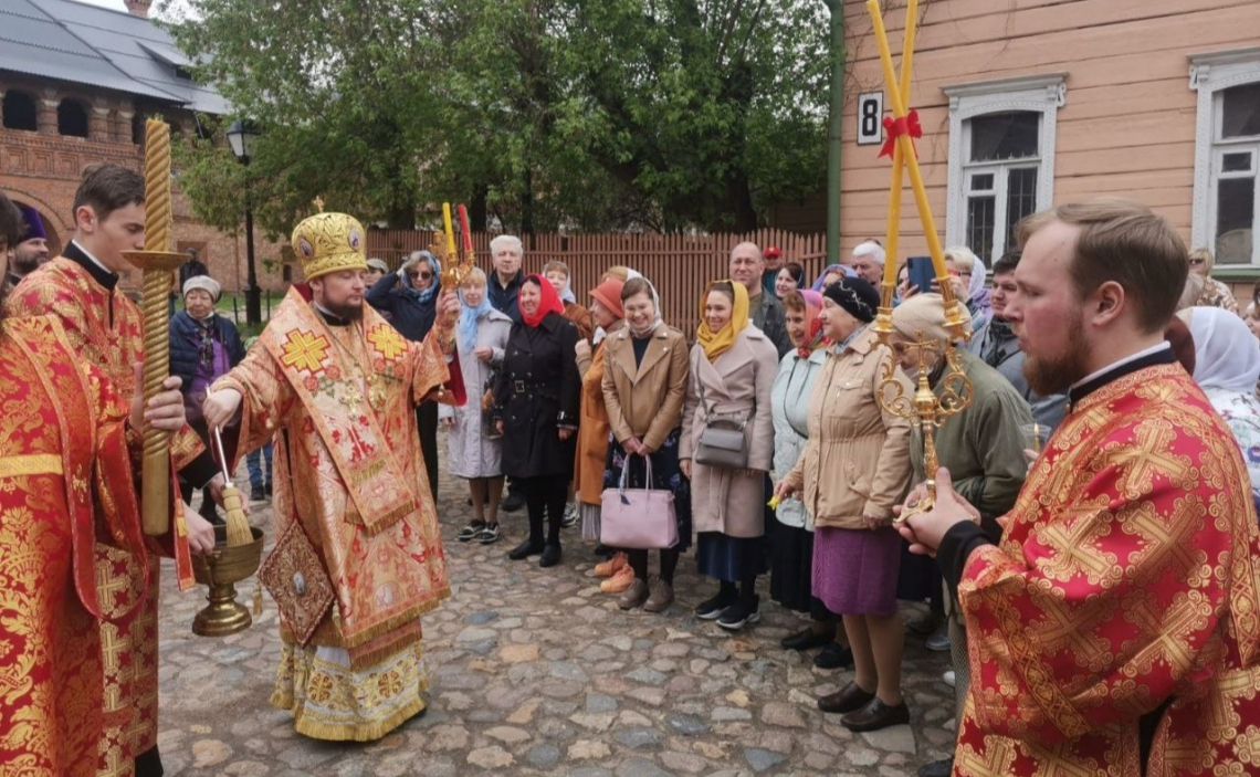 В завершение Божественной Литургии состоялся традиционный крестный ход вокруг Свято-Успенского собора, по окончании которого Владыка сердечно поздравил всех с Неделей Святых Жен-Мироносиц и обратился к верующим с архипастырским словом: