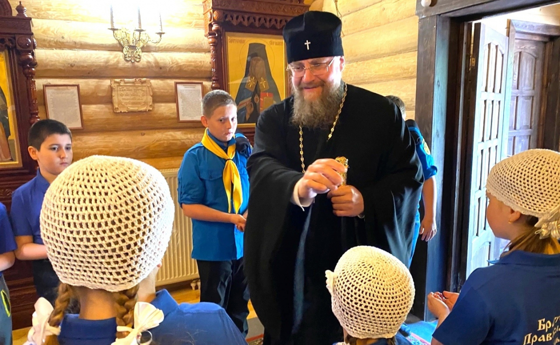 Затем к ребятам с напутственным словом обратился Владыка Николай и подарил каждому бутылочку для воды, которая пригодится не только в предстоящем походе, но и в любой другой день.