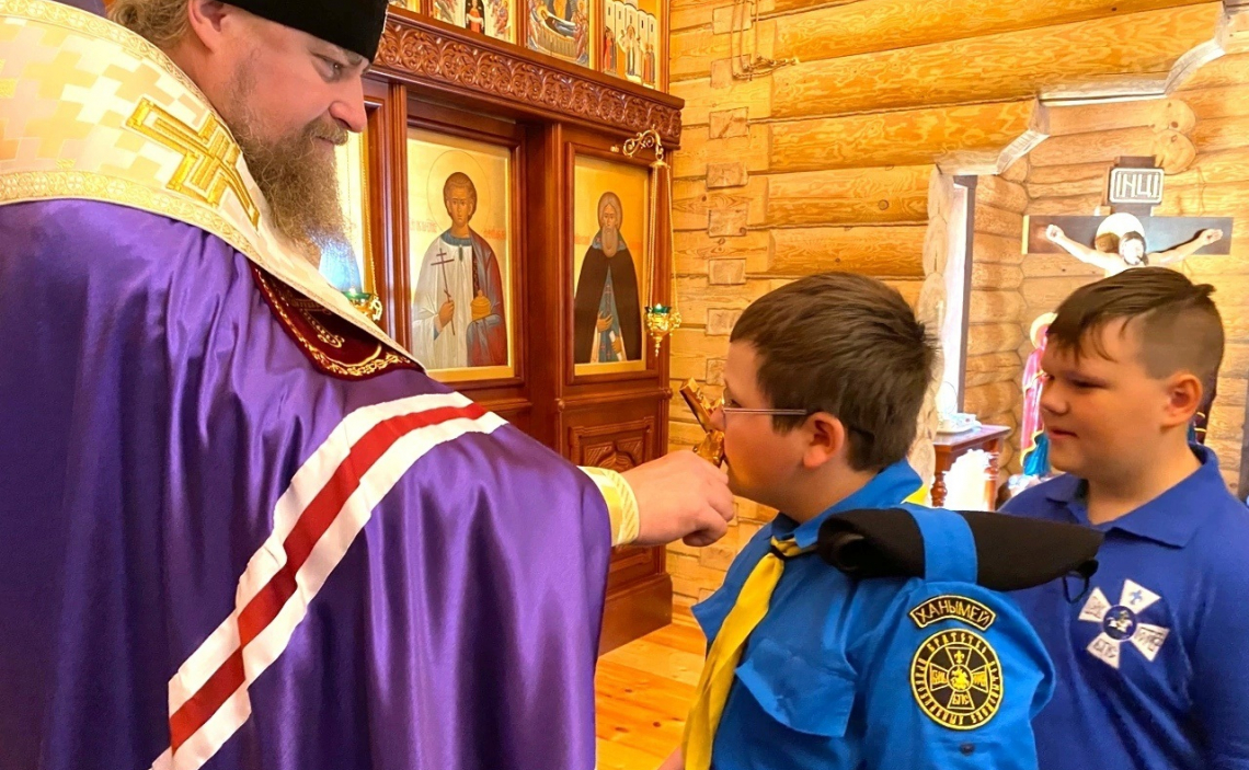 Новоуренгойский Николай. По окончании Богослужения состоялось построение отряда БПС с поднятием флага, исполнением гимна, сдачей рапорта и зачитыванием законов следопыта.