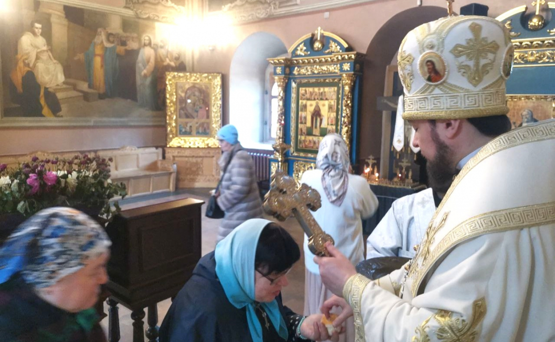 За Божественной Литургией по сугубой ектении Его Преосвященство вознес молитву о восстановлении мира.