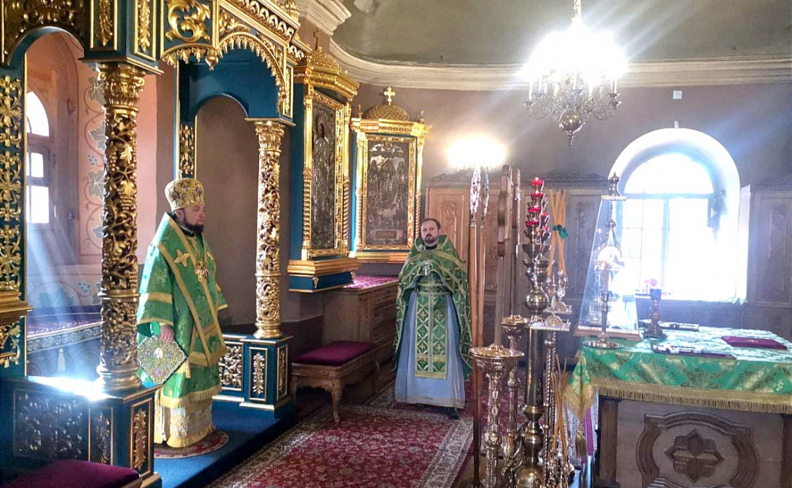 В день отдания праздника Пятидесятницы епископ Истринский Серафим совершил Богослужения в Свято-Успенском соборе Крутицкого подворья