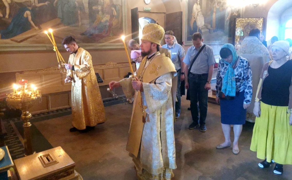 В канун Недели 2-й по Пятидесятнице, Всех Святых, в земле Русской просиявших, епископ Истринский Серафим совершил всенощное бдение в Свято-Успенском соборе Крутицкого подворья