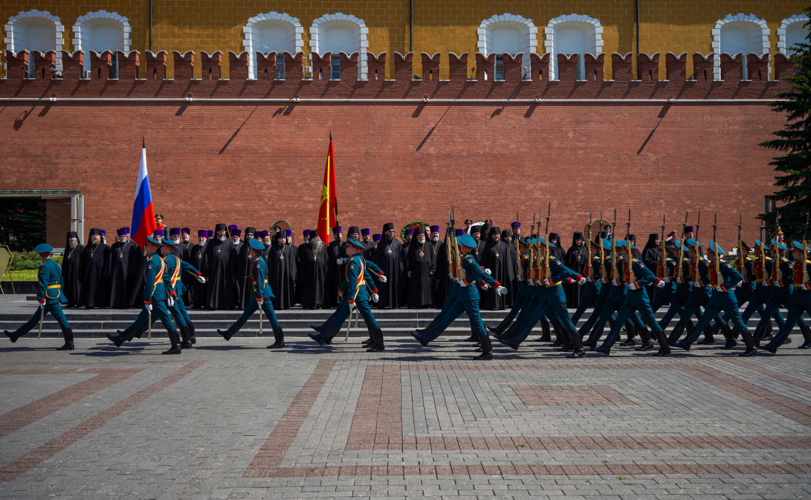 После возложения венка прозвучал гимн России. Затем иерархи и духовенство пропели «Вечную память» «вождем и воинам, жизнь свою за веру и Отечество положившим», после чего состоялся торжественный марш роты почетного караула 154 отдельного комендантского Преображенского полка.