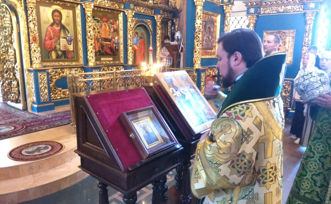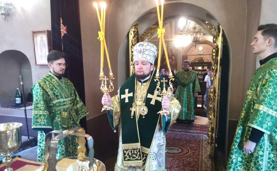В Неделю 3-ю по Пятидесятнице, день памяти Святого Преподобного Онуфрия Великого, епископ Истринский Серафим совершил Божественную Литургию в Свято-Успенском соборе Крутицкого подворья