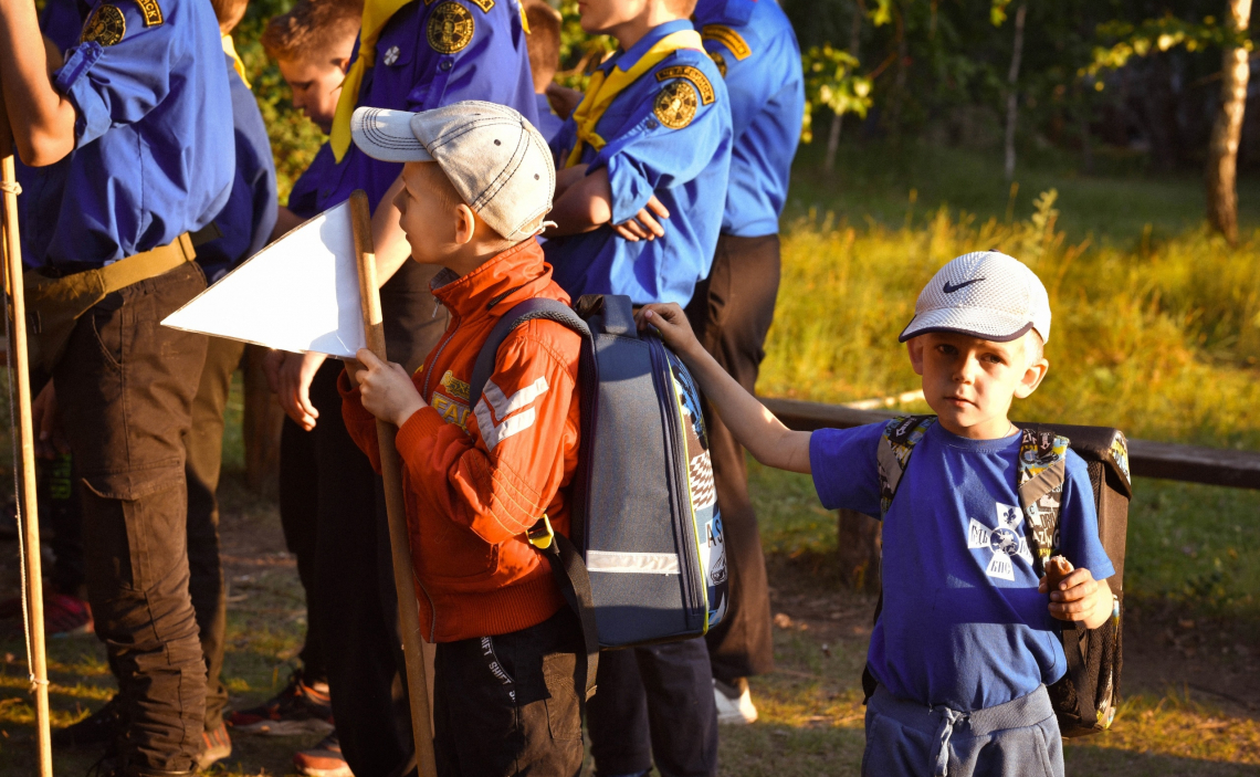 У озера собралось около 30 человек, совместно с иереем Дионисием Кадомцевым, руководителем регионального отделения БПС, который сам когда-то был скаутом.