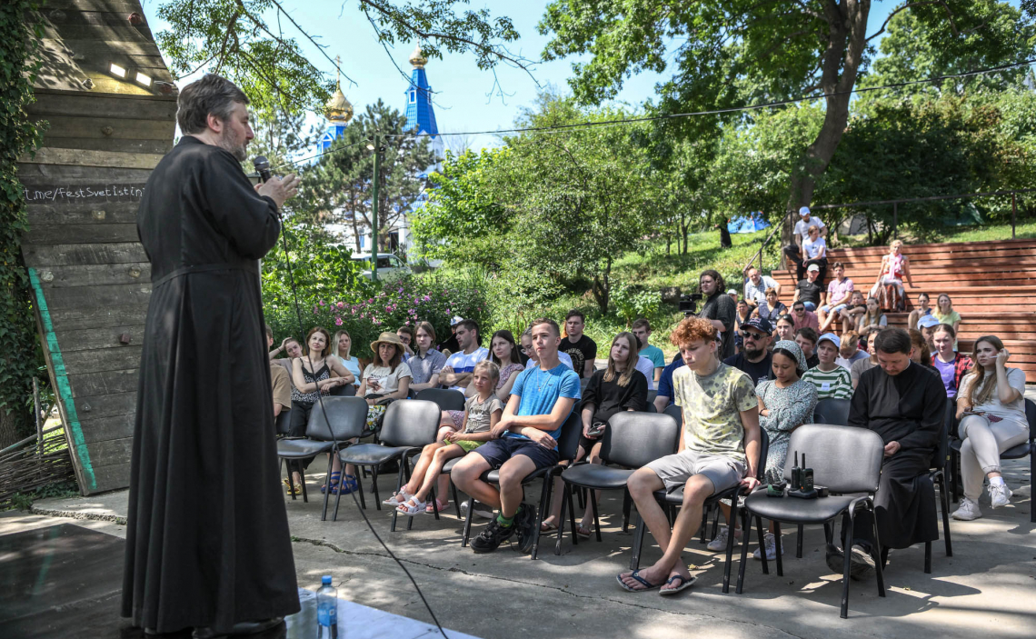 Сегодня за неокрепшие души молодых людей идёт настоящая борьба. Те, кто меня сейчас слышат, наверняка знают, как не просто выйти из зоны комфорта, оторваться даже на несколько дней от дома. Соблазны обольщают людей повсеместно. И кто сможет научить молодых той духовной борьбе, которая не позволит заметить, а, тем более, пристально разглядеть и принять мир падших ангелов? Этим силам ничего не стоит нарушать вашу свободную волю, если вы не защищаете свою духовную жизнь. Фестиваль даёт вам уникальную возможность находиться со священниками в режиме 24 /7: духовенство всегда действенно в противостоянии духовному злу. Те встречи, беседы, лекции, мастер-классы, которыми наполнен Фестиваль, уберегут вас от равнодушия и зла, помогут остаться с вами ангелам добра и света, не погрузиться в неправославные духовные практики, ведь доморощенные коучи так мощно и эффективно навязывают молодежи идеи целиком и заживо погрузиться в мир неоязычества и человеческих страстей.